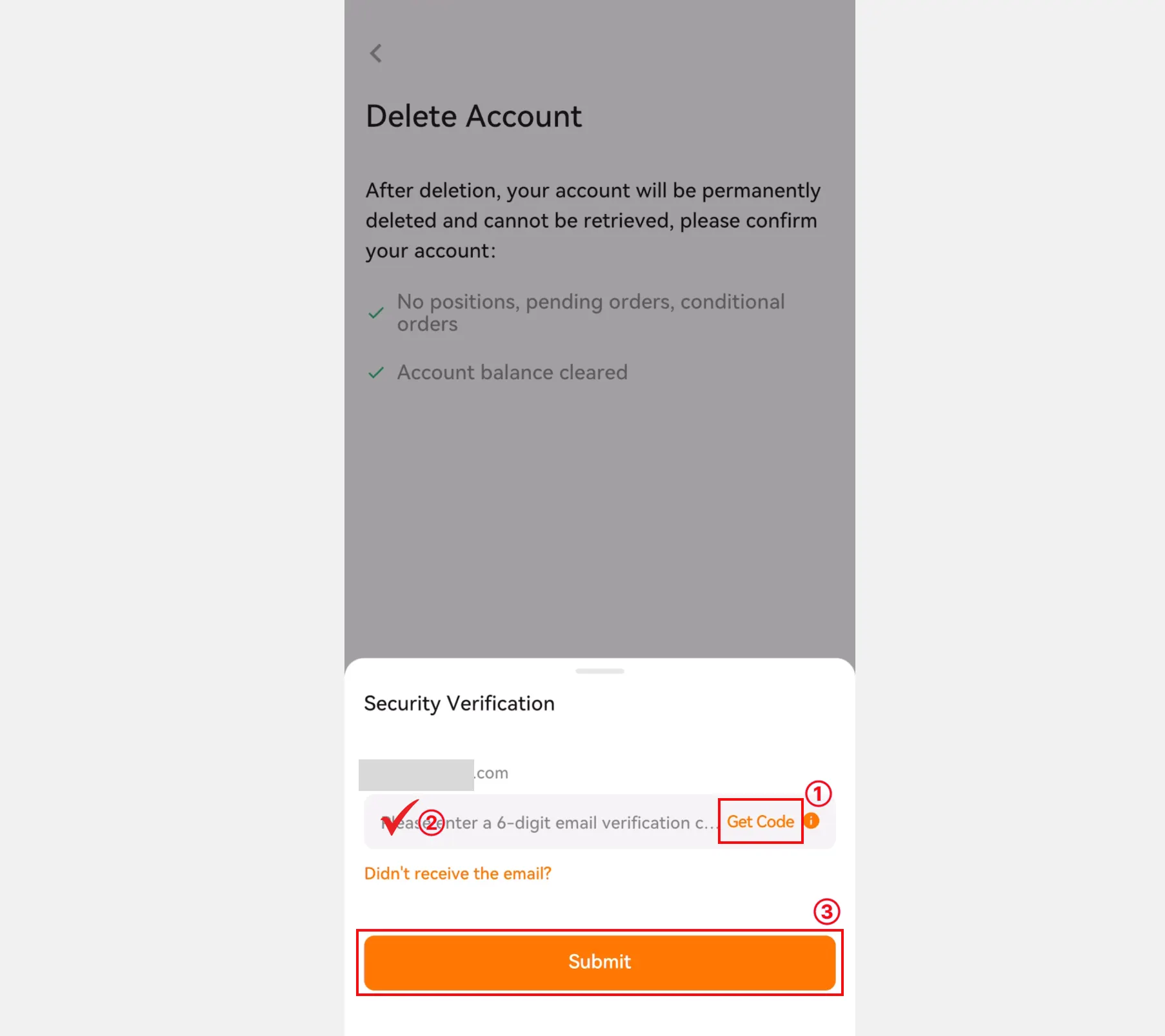 7. [Get Code]를 눌러 인증코드를 이메일로 전송하고, 코드를 입력후 [Submit] 버튼을 누르면 완료됩니다.