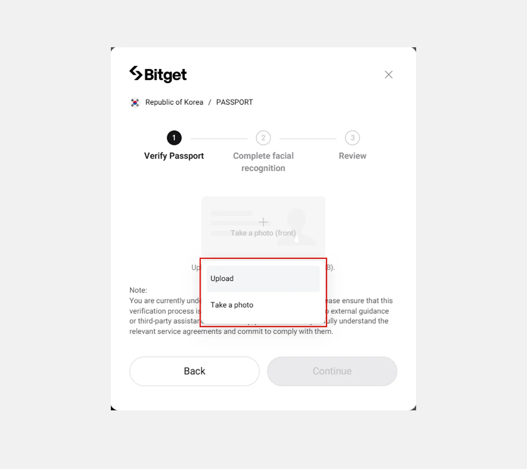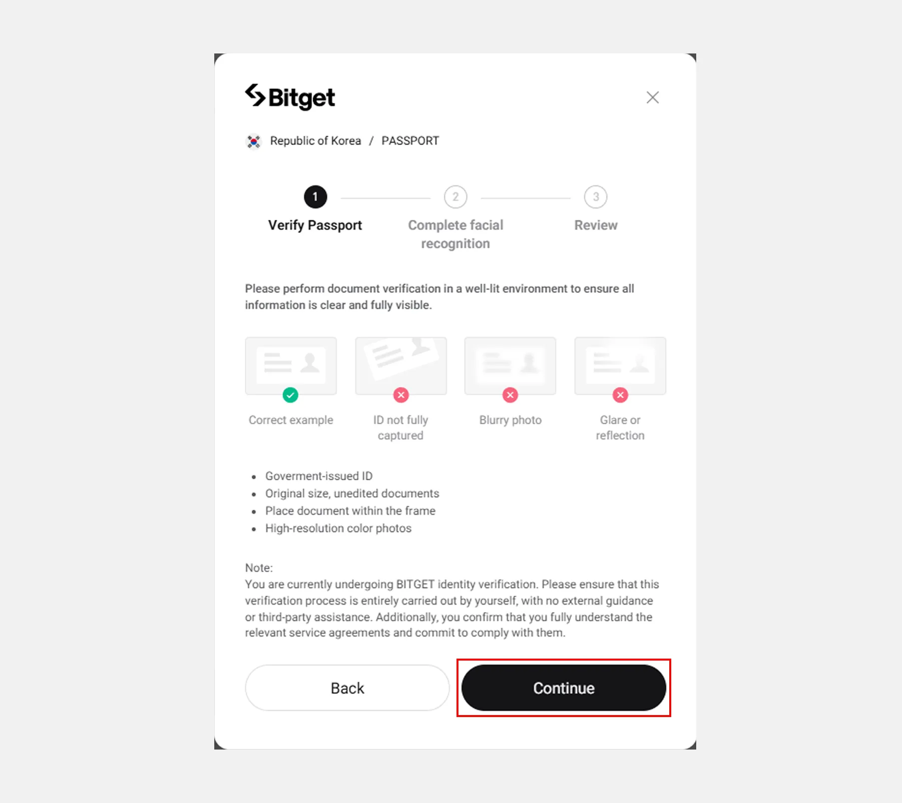 5. 신분증 업로드 방법을 확인한 뒤 [Continue] 버튼을 클릭합니다.