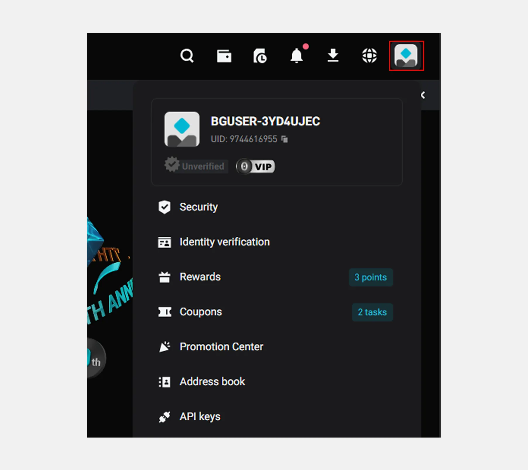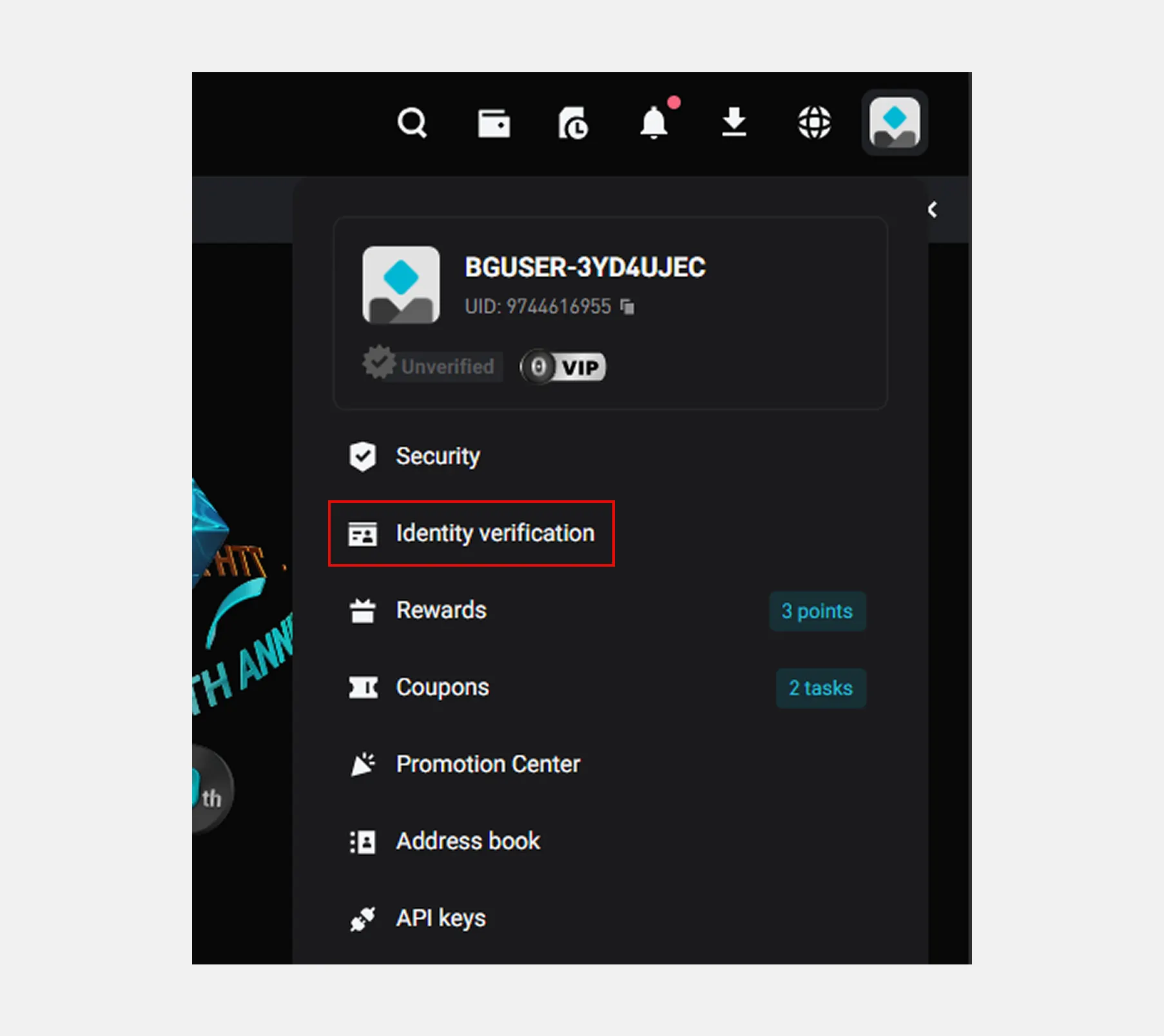 11. 좌측 상단의 프로필 아이콘을 클릭해 KYC 상태를 확인하세요.