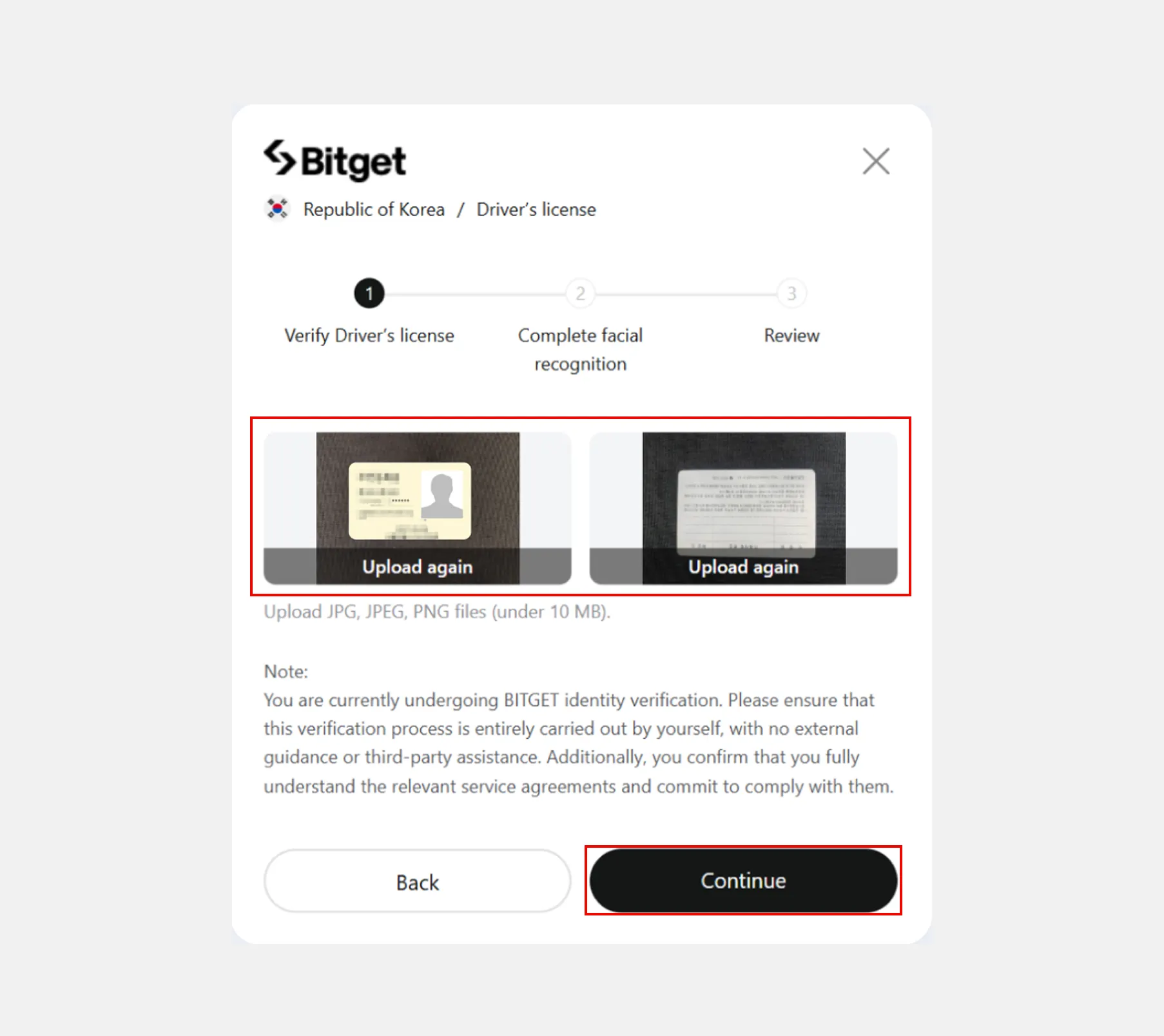 7. 신분증 종류에 따라 앞, 뒷면 사진을 업로드해주세요.