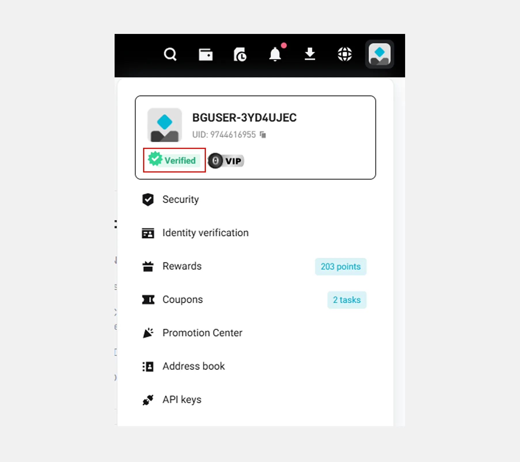 12. KYC 승인 후, 프로필 내 ID를 클릭하면 인증 상태가 [Verified]로 바뀐 것을 확인할 수 있습니다.