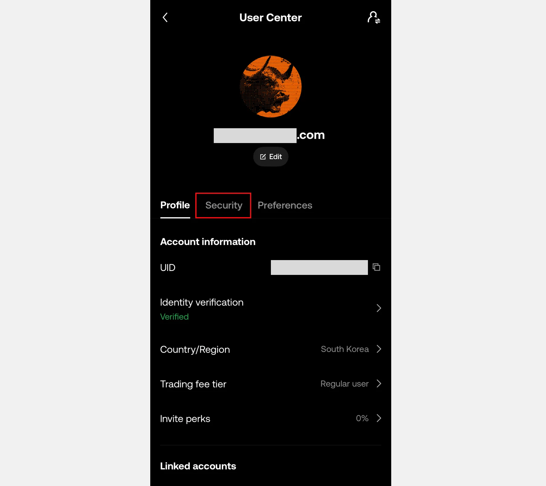 3. 프로필 화면에 진입하면 [Security]탭으로 들어가주세요.